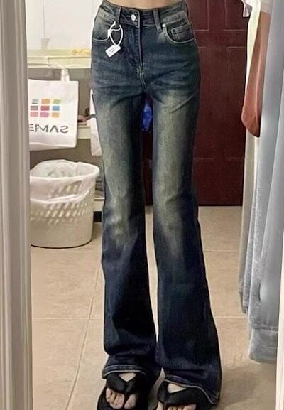2024春夏 ハイウエスト 韓国 レディース デニムパンツ ボトムス ワイドレッグ ゆるダボ ジーンズ 脚長
