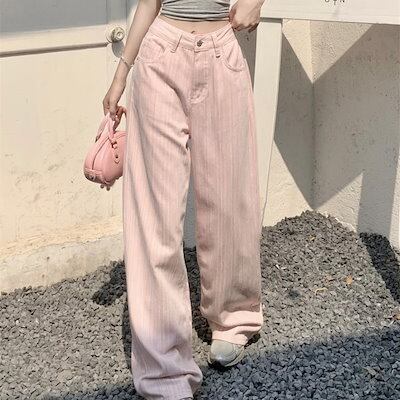 2024春夏パンツ デニム ジーンズ ロング丈 ワイド ストレート ハイウエスト 美脚効果 脚長効果 細見え 夏 白 黒 青 韓国ファッション レディース かわいい おしゃれ カジュアル お出かけ