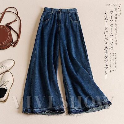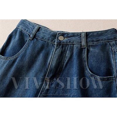 デニム パンツ レディース ジーンズ デニムパンツ ワイドパンツ ボトムス アンクル丈 リラックスパンツ ゆったり ハイウエスト 大人 ポケット付き