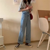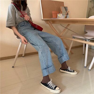 の早割おしゃれ ハイウエスト デニム パンツレディース ヴィンテージ ワイドパンツ デニムパンツ カレッジ風 ジーンズ