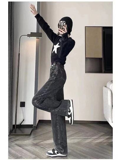厚手 ワイドパンツ ジーンズレディース ハイウエスト ゆったり 暖かい ストレートロングズボン 裏起毛ズボン 裏起毛パンツ