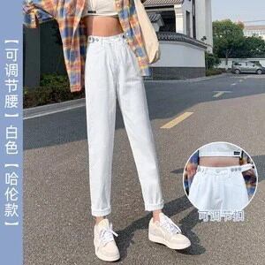 ジレンズ脚長効果 ジーパンレディース ストレートジーンズ ハイウエスト ゆとりがある ワイドパンツ ラッパズボン 調整可能 スキニージーンズ ジーパン
