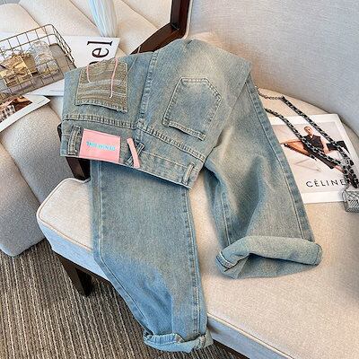 新作 ガウチョパンツ ライトブルー ストレートシリンダ ジーパン ゆとりがある 韓国ファッション ハイウエスト ワイドパンツ レディース