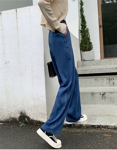 24新作 デニムパンツ ワイドパンツ レディース 大きいサイズ ウエストゴム 美脚 デニム ジーンズ パンツ ガウチョ ボトムス ロング ワイドデニムパンツ ゆったり ゆる シルエット 大人