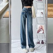 デニムボトムス スラックスパンツ レトロ ジーンズ デニム ワイドパンツ ゆったり ハイウエスト 怠惰風 垂れ感 着痩せ ズボン 凉しく 快適 プリーツ レディース ズボン ストレート ズボン