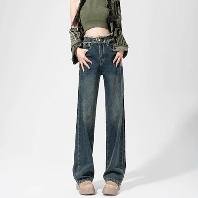デニムパンツ スラックスパンツ ワイドパンツ ズボン脚長効果!スキニーパンツ ゆったり レトロ レディース ジーンズ ワイドパンツ ハイウエスト デニムパンツ 流行り 2025新作