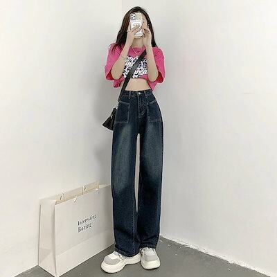 ワイドパンツモップパンツ ロングズボン 長ズボン ハイウェストゆったり デザイン感 レディース服 ロングパンツ ジーンズ 着痩せ レディースレトロ ワイドパンツ ジーンズ デニムボトムス
