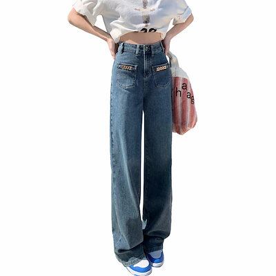 ワイドパンツ ロングズボン 長ズボン ハイウェストゆったり デザイン感 レディース服 ロングパンツ ジーンズ 着痩せ レディースモップパンツ ワイドパンツ ジーンズ デニムボトムス