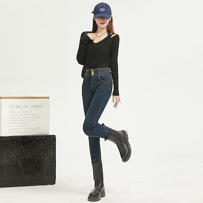 ワイドパンツ レディース ロングパンツ ダメージ 脚長効果!スキニーデニムパンツ 脚見せジーンズレディースブルーグレー百合タイツ ストレッチスリムスリムスリム 秋の新作