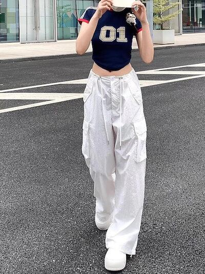 2024春夏パンツ ロング丈 サイドポケット ワイド ストレート ハイウエスト 美脚効果 脚長効果 細見え 夏 白 黒 黄色 茶色 青 おしゃれ かわいい 韓国ファッション レディース お出かけ