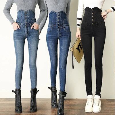2024 デニムパンツデニ 超ハイウエストジーンズ 足ストレッチレディース 春秋服 韓国版スリムタイツ ダメージ ロングパンツ レディース ワイドパンツ 脚長効果!スキニーデニムパンツ