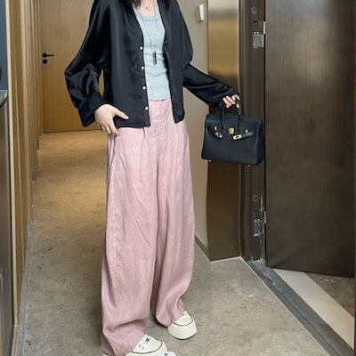 亜麻 ワイドパンツ レディース 薄い 夏 カジュアル ハイウェスト ゆったり 着痩せ ストレートパンツ モップパンツ ジョガーパンツ
