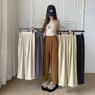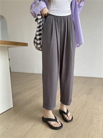 日系 カジュアルパンツ レディース 夏 薄い ハイウェスト 着痩せ ワイドパンツ ストレートパンツ ハーレムパンツ 速乾性パンツ 九分丈パンツ 伸縮性のあるウエスト