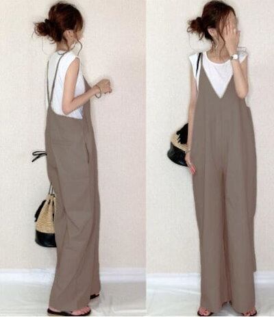 【細く見える】サロペット オールインワン レディース 体型カバー サロペットパンツ 着痩せ ワイドパンツ レディース オーバーオール オールインワンジェル マタニティ ロングパンツ