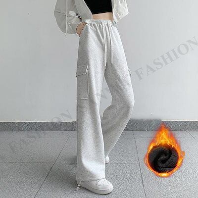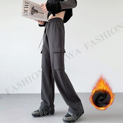 ワイドパンツ レディース 裏起毛 ストレート カーゴパンツ ガウチョパンツ ジャージ ハイウエスト ゆったり 防寒 着痩 冬服 暖か ダンス おしゃれ