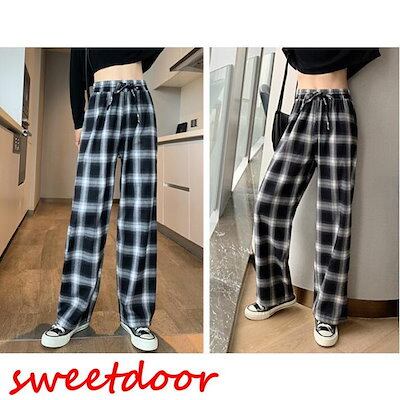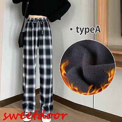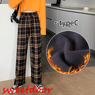 チェックパンツ ワイドパンツ 裏起毛 レディース 秋冬 コーデ 冬 ボトムス ドロストパンツ ウエストゴム イエロージーパンツ ゆったり おしゃれ 柄 新作