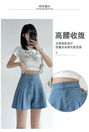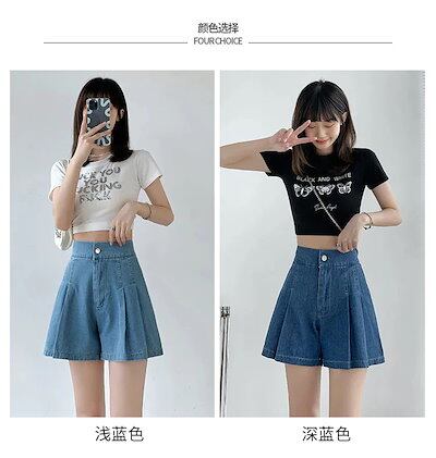 ひんやりボトムス ジーンズレディースデザイナーハイウエスト大きいサイズゆったり細身ストレートレッグワイドレッグプレスドクリースカジュアルバラエティショートパンツ