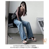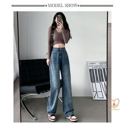 今月の新型,パンツ ワイドパンツ デニム レディース 春秋冬 ハイウエスト ジーンズ デニムパンツ 大きいサイズ ゆったり ストレート ロングパンツ ボトムス シ