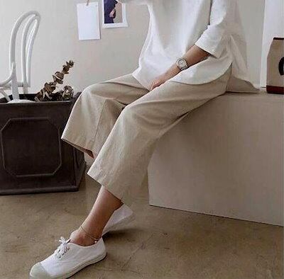 ン パンツ ン レディース ガウチョ 無地 麻混 ゆったり 9分丈 大きいサイズ ワイドパンツ ボトムス