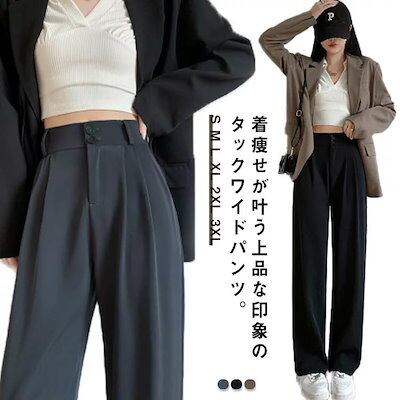 タックパンツワイドパンツレディース低身長高身長スラックスパンツ大きいサイズテーパードパンツグレーオフィスカジュアルストレートパンツ通勤ボトムスロングパンツきれいめ