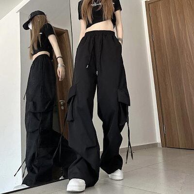 裏起毛&薄レディースカーゴパンツベイカーパンツゆったりカジュアルIミリタリーパンツヒップホップダンス衣ワイドパンツボトムス大きいサイズハイウエスト無地カッコいい