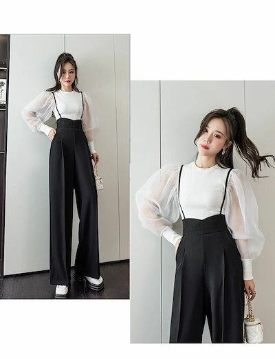 サロペット パンツ ワイドパンツ レディース オールインワン キャミソール ワイド パンツ オーバーオール 無地 春夏秋 ロングパンツ シンプル 体形カバー 着?せ ゆったり きれいめ 薄手 エレガン