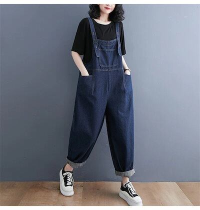 デニムサロペット オールインワン レディース デニム ワイドパンツ ズボン ジーパン ジーンズ ポケット ナチュラル 春夏秋冬 大きいサイズ ゆったり 体型カバー 着?せ 大人可愛い 森ガール カジュ