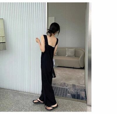 サロペット パンツ ワイドパンツ レディース オールインワン ワイド パンツ オーバーオール 無地 春夏秋 ロングパンツ スクエアネック シンプル 体形カバー ゆったり きれいめ 薄手 おしゃれ エレ