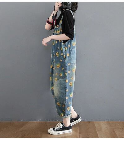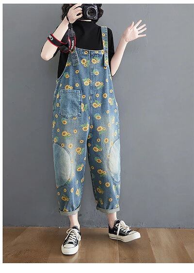 サロペット デニム オールインワン レディース サロペット 大人可愛い 花柄 美ライン 夏物 夏 楽ちん 大人気 デニム デニムワイドパンツ デニムサロペ 春 秋 ゆったり 総柄 体型カバー 大きいサ