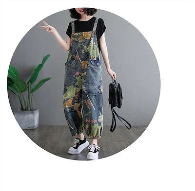 サロペット オールインワン デニム レディース 総柄 ワイドパンツ バルーンパンツ ポケット ナチュラル 春夏秋冬 大きいサイズ ゆったり 体型カバー オールシーズン 着?せ 大人可愛い 森ガール カ