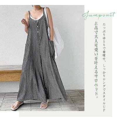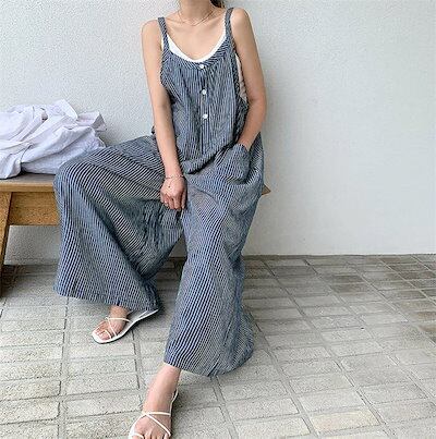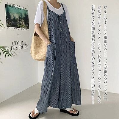 オールインワン サロペット ロングパンツ レディース ワイドパンツ ジャンパー ストライプ チェック ポケット フレア レディース 春夏秋 ゆったり 体型カバー 着?せ 大人 シンブル カジュアル