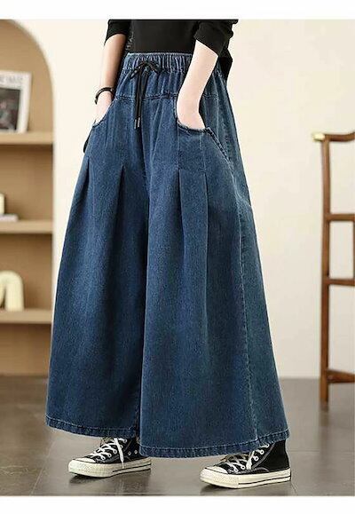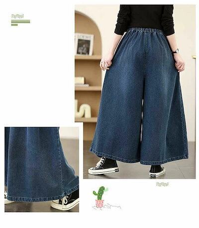 ワイドパンツ デニム デニムパンツ レディース 大きいサイズ ワイドデニム ジーンズ ジーパン ライトデニム ゆるボトム ルーズ おしゃれ 春 秋 冬 長め ロング丈 フレアパンツ ボトムス ゆったり