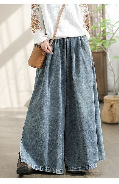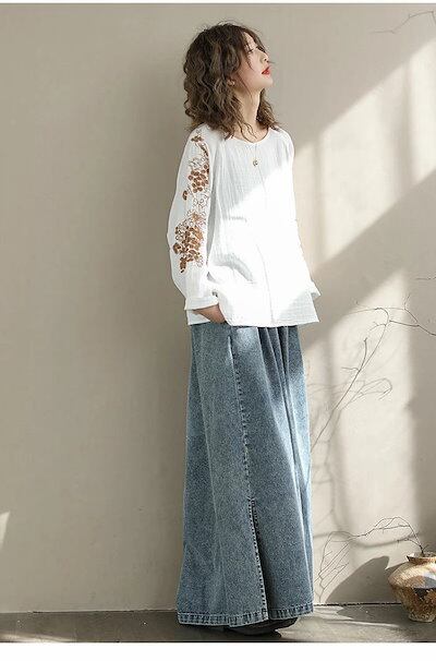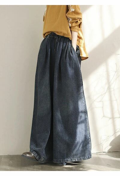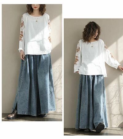 ワイドパンツ デニム デニムパンツ レディース サイドスリット パンツ ボトムス ズボン 長ズボン ロングパンツ ロング丈 ウエストゴム 大きいサイズ ゆったり ワイドデニム ジーンズ おしゃれ 春