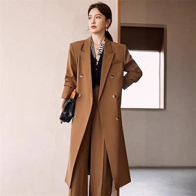 セットアップ スーツ レディース パンツスーツ フォーマル 通勤 洗える セレモニー 大きいサイズ 就活スーツ ロング丈 春 秋 無地 着回し ロングジャケット ワイドパンツ ゆったり 2点セット 入