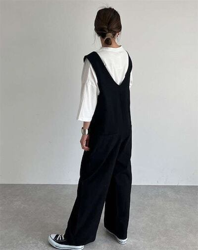 サロペット パンツ レディース オールインワン Vネック 楽ちん サロペット ワイドパンツ 春夏 パンツドレス サロペットパンツ ボトムス オーバーオール ゆったり 体型カバー 着痩せきれいめ 大きい