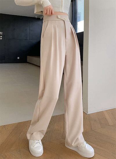 ワイドパンツ ロング パンツ レディース ボトムス きれいめ ズボン 長ズボン ワイド ロングパンツ ハイウエスト ストレート スーツパンツ 無地 ポケット付き ゆったり 大人 春夏秋冬 体型カバー