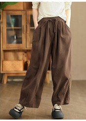 パンツ バルーンパンツ ワイドパンツ レディース 秋 冬 春 コットン9分丈 ボトムス ガウチョパンツ イージーパンツ 着痩せ 体型カバー ウエストゴム カジュアル ゆったり 無地 シンプル きれいめ