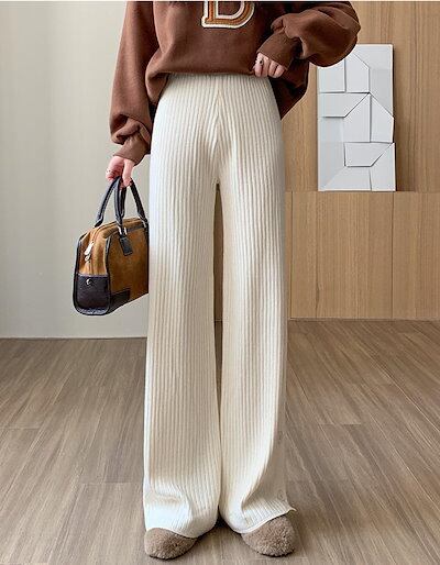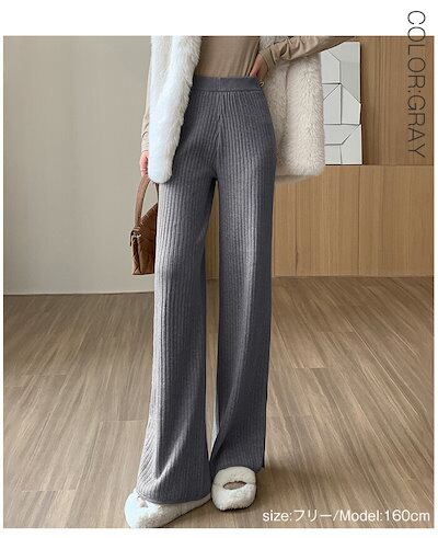ニットパンツ リブニット ワイドパンツ レディース 春 秋 冬 ニットワイドパンツ ガウチョ ウエストゴム ニット リブ ゆるパンツ リラックス 楽ちん ロングパンツ イージーパンツ 裾ボタン ワンマ