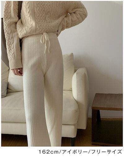 ニットパンツ リブニットワイドパンツ レディース 春 秋 冬 リブニット ワイドパンツ ガウチョ ウエストゴム ニット リブ ゆるパンツ リラックス 楽ちん ロングパンツ フレアパンツ ワンマイルウェ