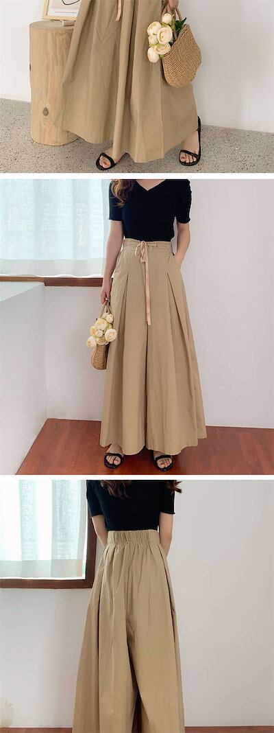 ワイド パンツ レディース 春 夏 無地 麻素材風 ネイビ カーキ パンツ ボトムス カジュアル ゴムタイプ 体型カバー オシャレ 女性らしい 可愛い 通学 通勤 OL ゆったり 20代 30代 40