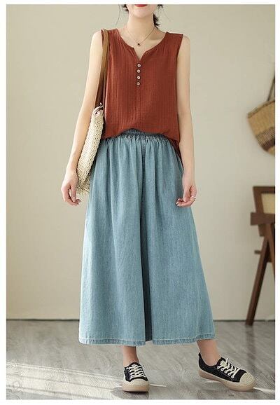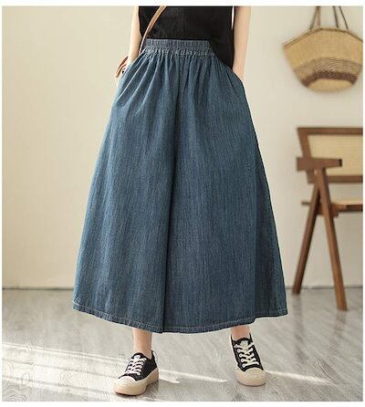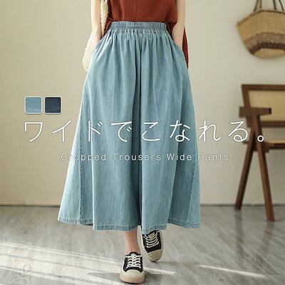 パンツ デニム レディース7分丈 ワイドパンツ フレアパンツ チノパンツ 春夏 涼しい ボトムス 大人 ゆったり ワイド 楽ちん 無地 シンプル リラックス カジュアル きれいめ お洒落 体型カバー
