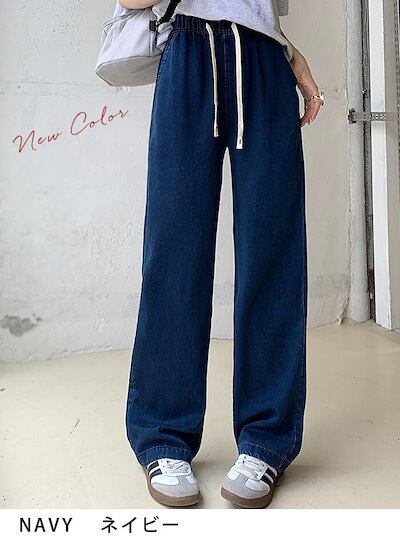 デニムパンツ レディース ロング パンツ ボトムス 春夏 ジーンズ ストレート ワイド 無地 ウエストゴム 接触冷感 薄手 涼しい ロング丈 ジーンズ ジーパン ひんやり 大きいサイズ UVカット ゆ