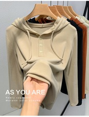 2023新作 レディース プルオーバー カットソー 長袖 パーカー トップス フード フーディ ボタン
