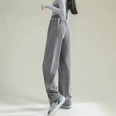 ニットパンツ ワイドパンツ レディース 秋冬 新 ハイウエスト 垂れ感 ゆったり 百掛け ストレートパンツ カジュアル 運動ズボン