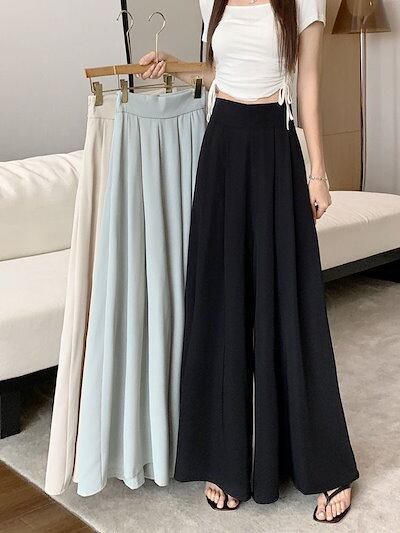 2023最新ワイドパンツ レディース 夏 涼感 速乾 オーバーサイズ 体型カバー ひんやり ロング フレア パンツ 低身長 高身長 ポケット付き かっこいい!スラックスパンツ