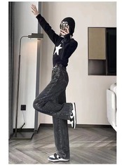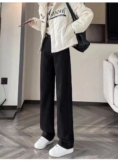 厚手 ワイドパンツ ジーンズレディース ハイウエスト ゆったり 暖かい ストレートロングズボン 裏起毛ズボン 裏起毛パンツ