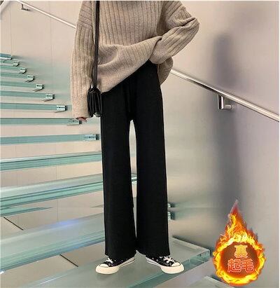 ストレートパンツ ワイド ニットパンツ 裏起毛と薄手2タイプ マタニティ ロングパンツ レディース マタニティパンツ ニット ストレンチ ウエスト