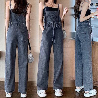 デニムサロペット レディース ワイドパンツ ロング丈 オーバーオール オールインワン 体型カバー 大きいサイズ 春夏