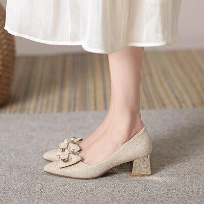 パンプス 痛くない 結婚式 ドレスパンプス 黒 白 走れる 大きいサイズ とんがりトゥ 走れるパンプス 4.5cmヒール ミドルヒール リボン パーティー