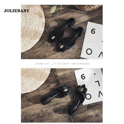 【3日以内出荷】フラットシューズ パンプス 走れるパンプス レディース オープントゥ サンダル リボン ゼリー ハイヒール 太ヒール 結婚式 通勤23-25cmオフィ 痛くない